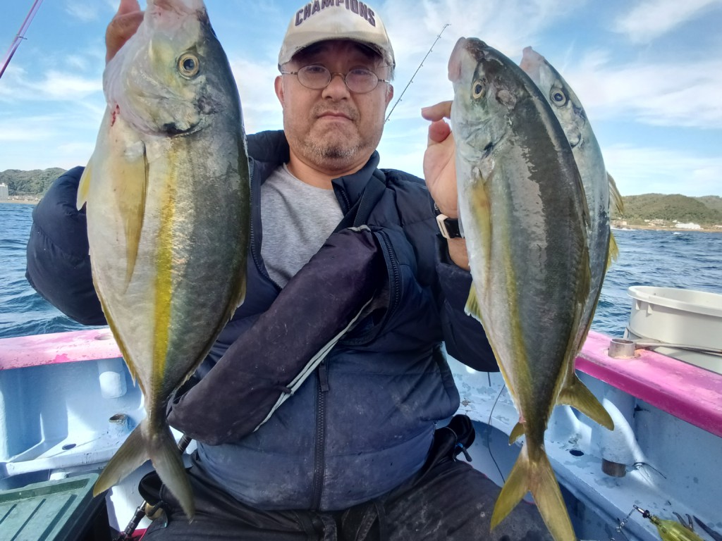 シマアジの活性が良く入れ食い状態でトリプルもありました。シマアジは皆様ツ抜けして船中30尾以上‼小さいのは放流しました。他にも良型シマアジのバラシが多数あり。ゲストはマダイ・ショゴでした。