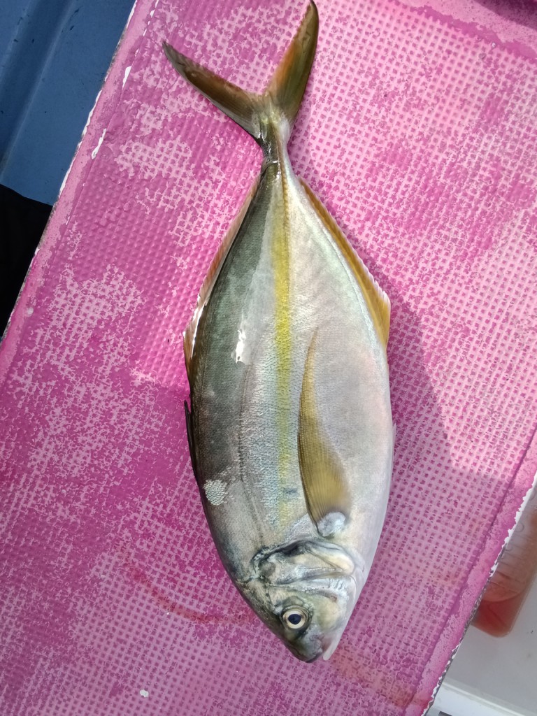 小型~良型シマアジのアタリはダブル等も含めて多数あって皆様GETでオデコなし。また喰いが浅く外れてしまったり根ずれによるハリス切れ横取り等バラシも多数ありました。ゲストはスマガツオでした。小さすぎるのは放流しました。