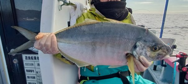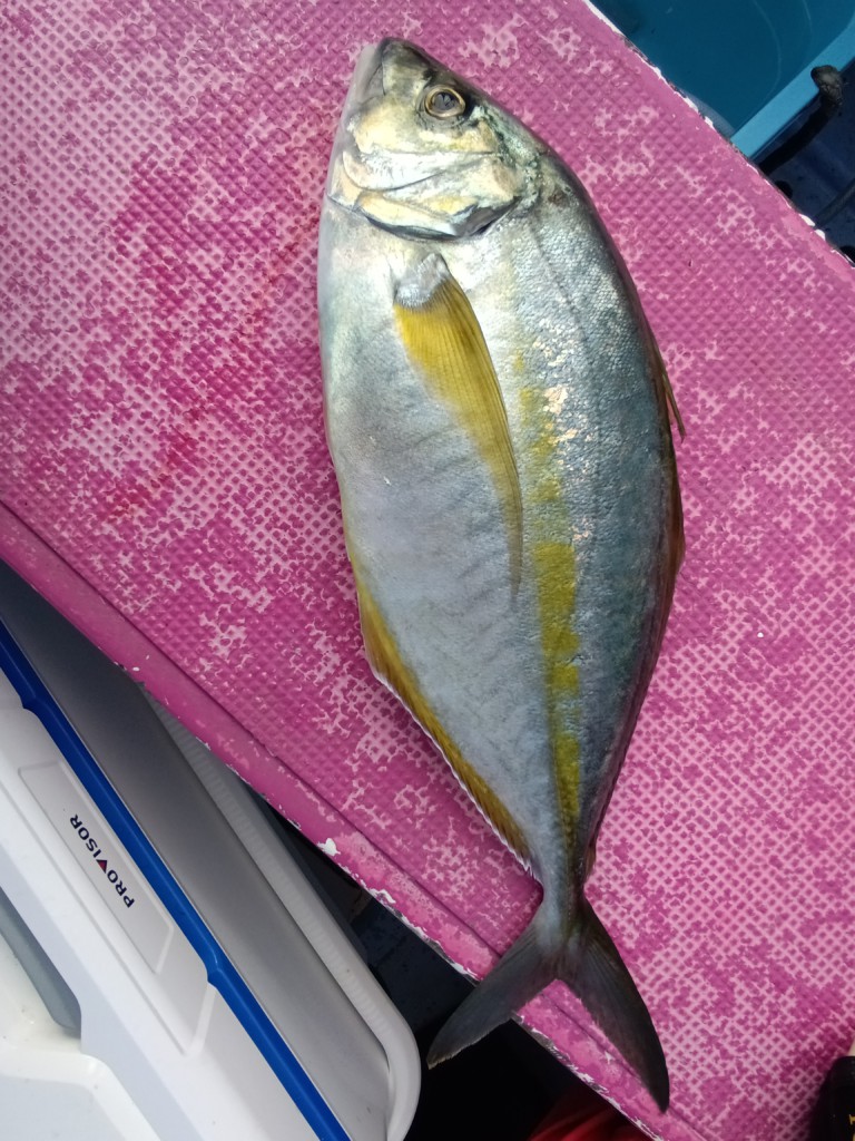 本日も朝から中盤くらいまでポツポツとアタリが有り、当たれば良型が多めで小型は少々でした。バラシは数回でした。良型シマアジは船中で11尾でした。ゲストはスマカツオでした。