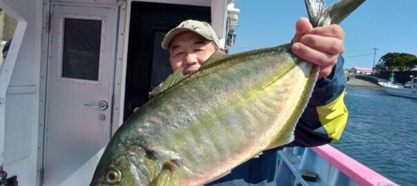 【午前】シマアジ 2026年2月22日釣果海正丸. 本日も反応だけは出ているもののアタリはいまいちで喰いも浅く苦戦したがなんとか良型シマアジのお顔は見れました。水面から見えるところまで大型シマアジが浮いてはきていたがハリスは見切られていました。 明日は11名様のご予約を頂いております。まだ空席ありますのでご予約をお待ちしております。 シマアジ0.6㎏・1.9㎏0~1 波の高さ:0.5~1.0m水温:15.7~16.0℃鮮色:うすにごり風:南6~8m潮は流れていた