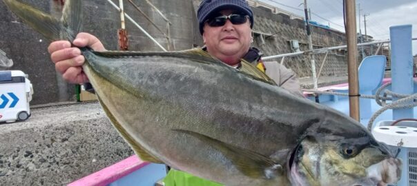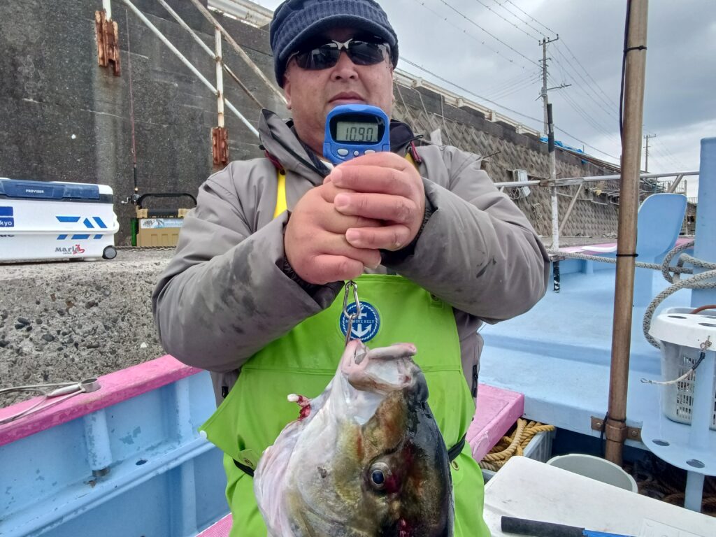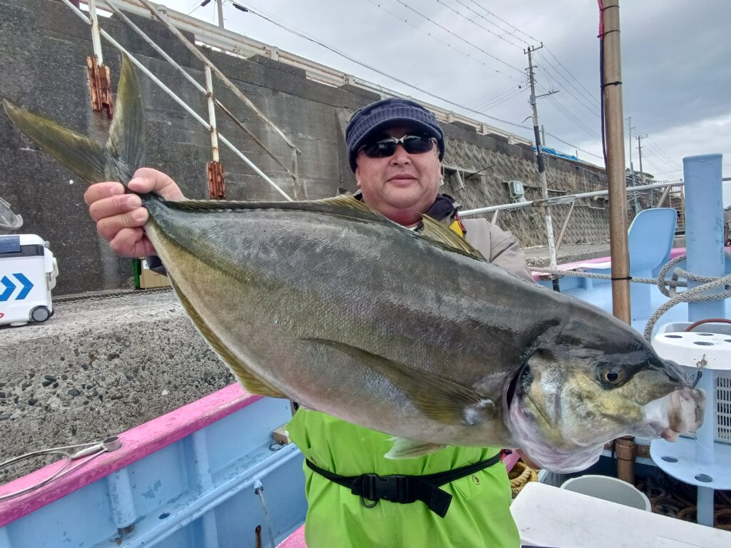 とうとう来ましたこの時が‼朝から良型シマアジのアタリがあるものの喰いが浅くバラシ続きで沖揚がりまで残すところ1時間を切ったころに強烈な引き!しばらくやりとりして浮上してきたのは堂々と10を超えるシマアジ(オオカミ)が無事にネットイン。お見事でした。仕掛け回収やタモ入れなどご協力してくださり誠にありがとうございました。